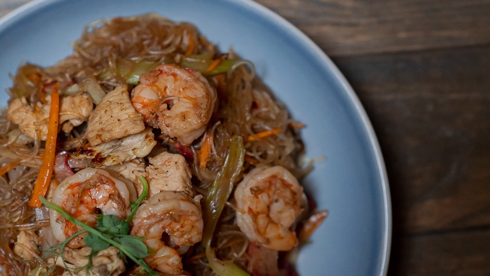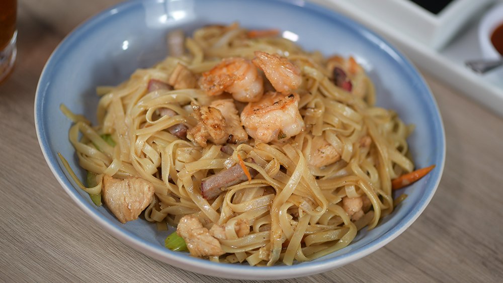 Cerdo ahumado, camarón, pollo, tallarín de la casa, salsa soya, salsa de ostión, cebollín, apio, zanahoria $295
