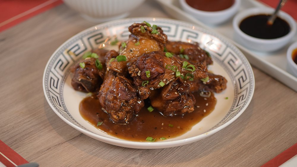 Alas de pollo guisadas en salsa de ostión, jengibre, ajo $250