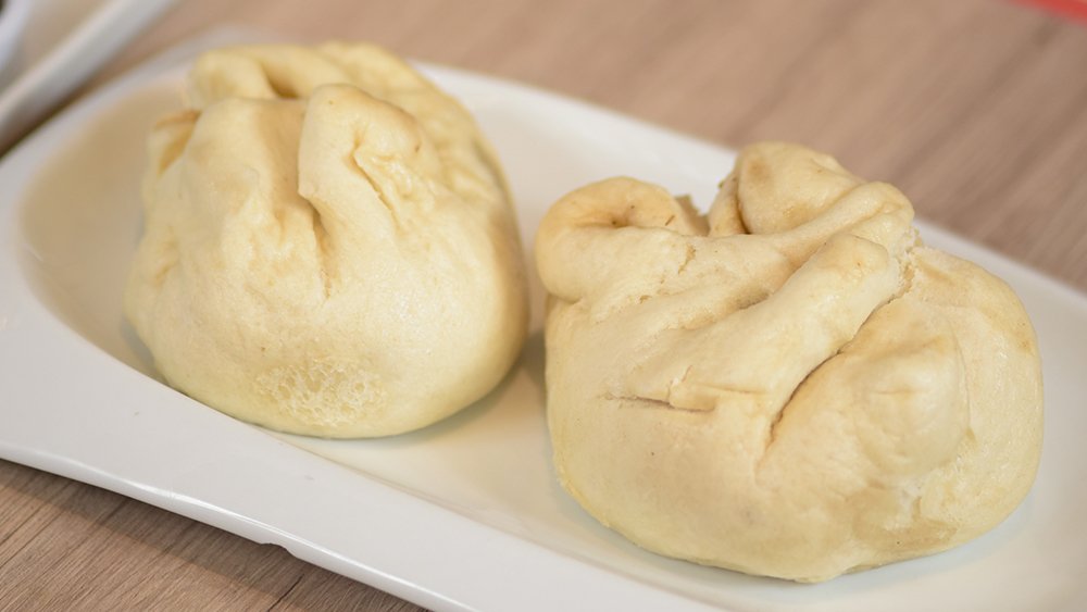 Pan al vapor relleno de carne de cerdo ahumado, chorizo chino, shitake, apio, castaña de agua, salsa soya y ostión $165